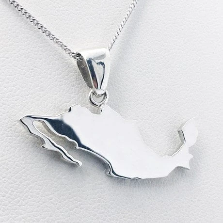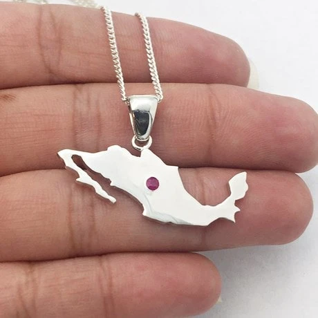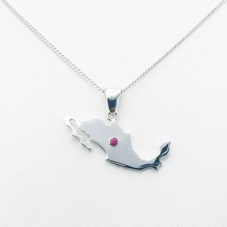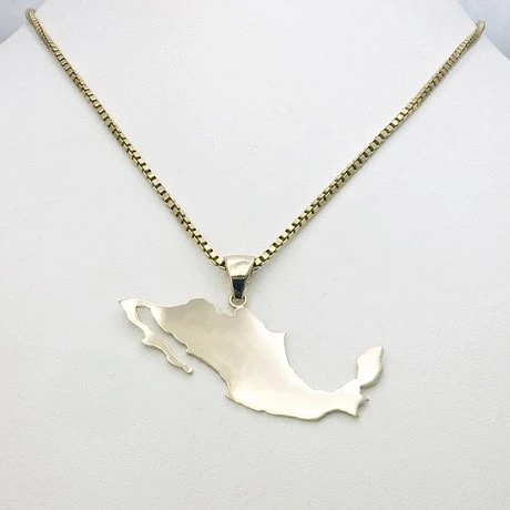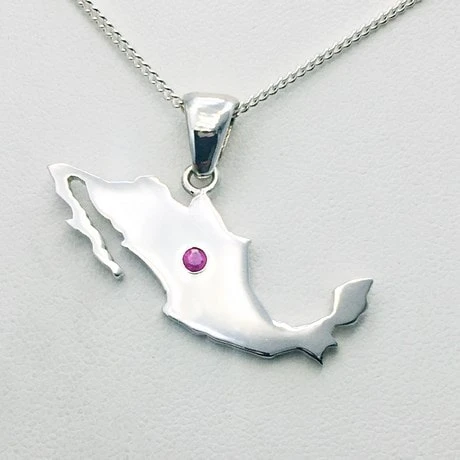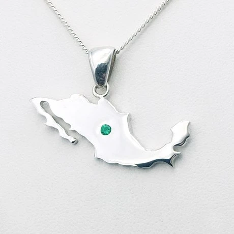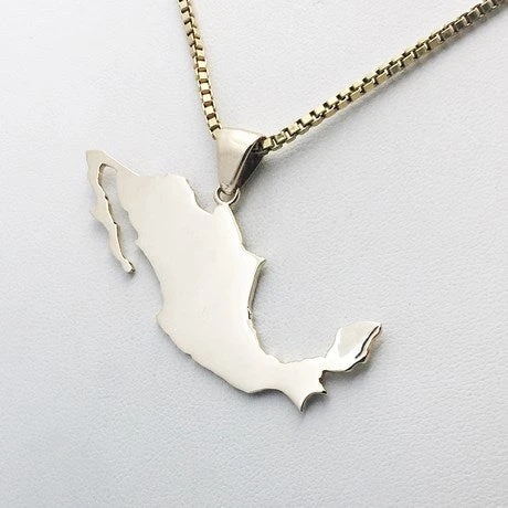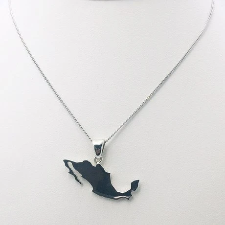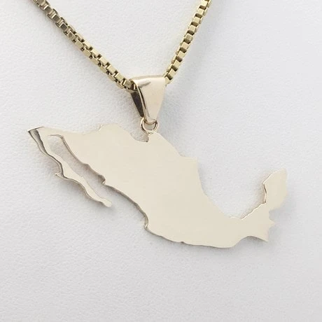 Ce collier mexicain ravira toute personne ayant eu l’occasion de voyager au Mexique et souhaitant porter un souvenir emblématique de pays. Ce pendentif représente la carte du Mexique découpée dans une plaque d’argent 925 ou bien d’or jaune 18 carats au choix.