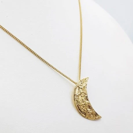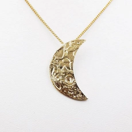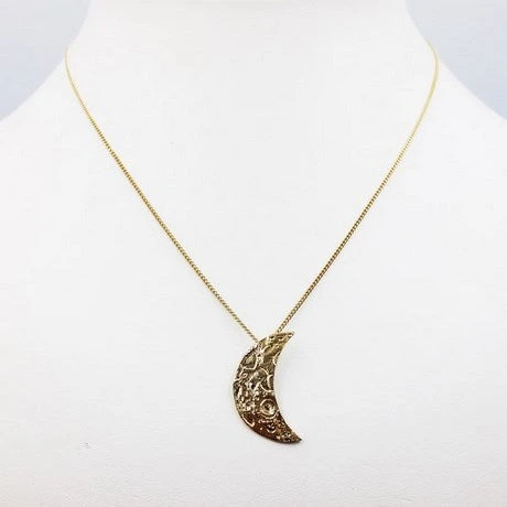 Les pendentifs en forme de croissant de lune sont légion, ce qui est un peu normal étant donné la fascination qu’inspire notre satellite naturel lorsqu’il illumine nos nuits avec cette lumière si particulière. Quiconque à déjà pris le temps de l’observer ou bien d’assister à une eclipse de lune sait de quoi je parle.
