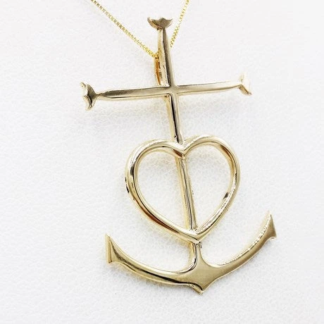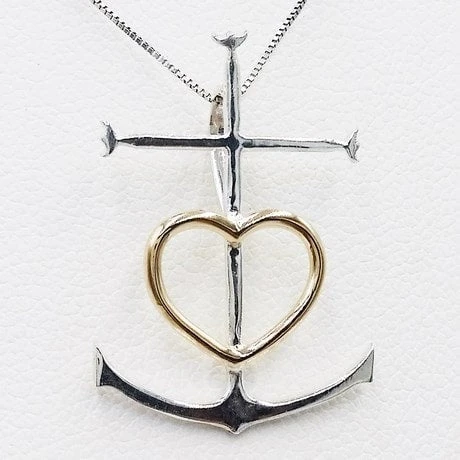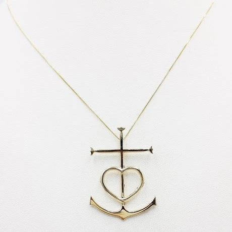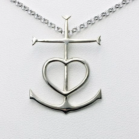 Ce pendentif se distingue par les tridents détaillés, l’ancre de marine ayant du volume ainsi que le coeur central qui est superposé sur l’ancre et la croix afin de créer un relief intéressant et donner plus de volume au bijou lui donner un effet unique.