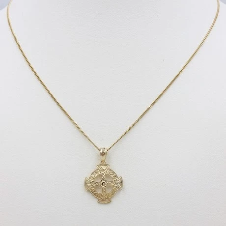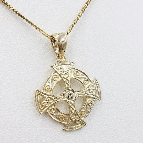 Pendentif reprenant le design d’une croix celtique dont ont retrouve les caractéristiques principales, à savoir la croix qui est superposée sur le cercle et dont les branches dépassent de ce dernier.