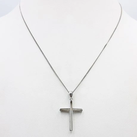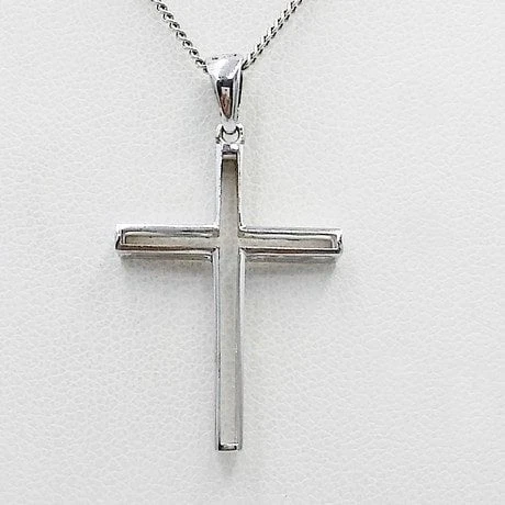 - Croix de 25 millimètres de hauteur par 19 millimètres de large et 32 millimètres de hauteur avec le passant de chaîne pour un poids de 2 grammes en or 18 carats