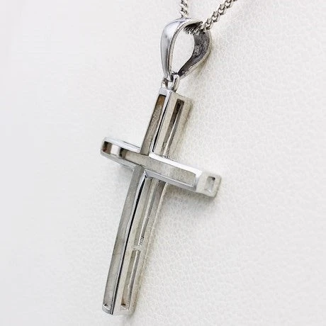Croix chrétienne au design original et léger qui conviendra parfaitement pour offrir à l’occasion d’un baptême religieux chrétien. Cette croix se compose d’un détourage en or en forme de croix, le centre de la croix étant vide. Cette croix est doublée dans le sens de l’épaisseur ce qui lui confère du volume tout en restant fine et légère en plus de présenter un design tout à fait original.