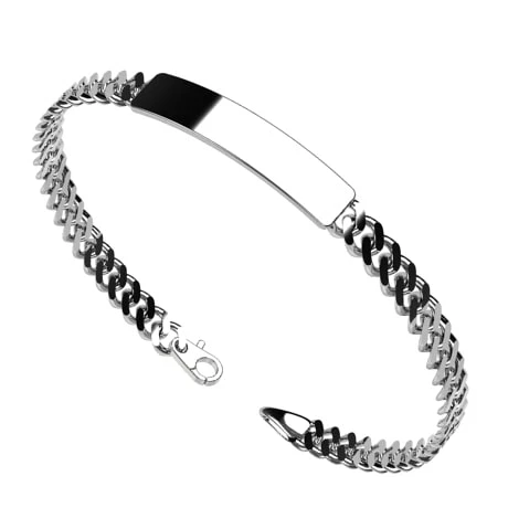 Ce bracelet est destiné à un homme souhaitant porter une gourmette luxueuse personnalisé du texte de son choix ayant une finition et durabilité incomparable.