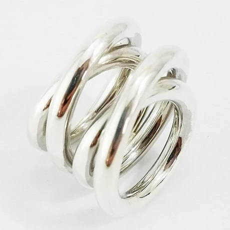 Cette bague en argent massif est destinée à une femme audacieuse et confiante, qui apprécie les designs uniques et contemporains, elle recherche à se distinguer avec des pièces de bijoux originales et sophistiquées.