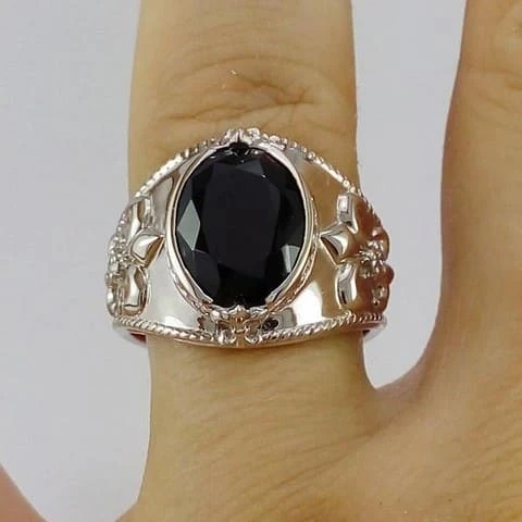 - Chevalière en argent pour homme avec onyx et diamant solitaire