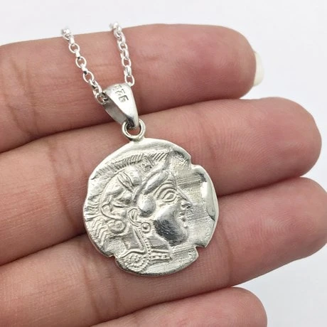 Ce pendentif de type unisexe ravira une personne amoureuse de l’art antique et désireuse de porter un joli bijou en métal précieux inspiré de la culture grec datant de 2500 ans environs.