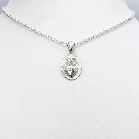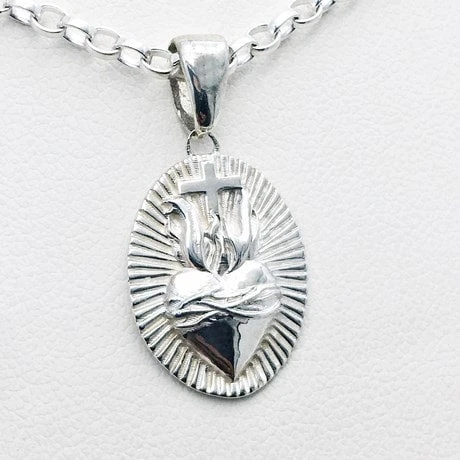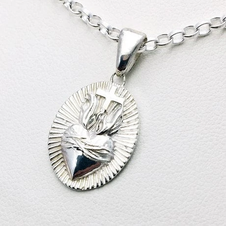 Le sacré coeur de Jésus symbolise l’amour divin, raison pour laquelle cette médaille religieuse peut servir aussi bien de médaille de baptême.