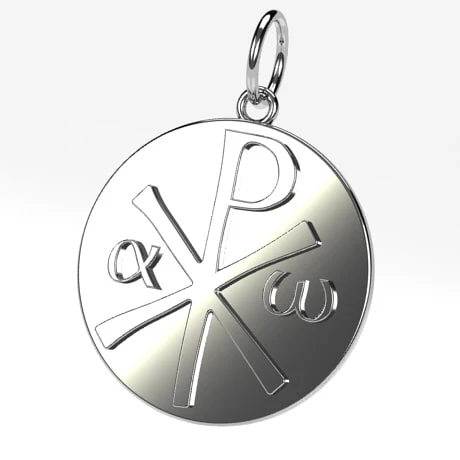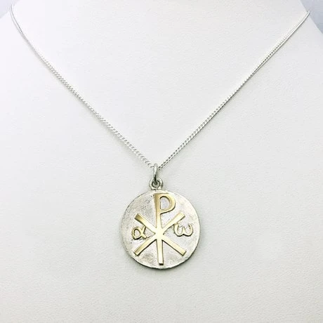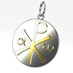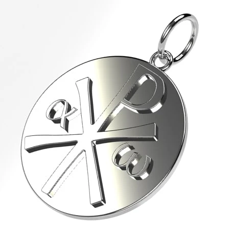 Ce pendentif est une réalisation de notre atelier fait à partir un dessin historique d’un Chrisme qui se veut fidèle à l’original avec ses bords non droits et moderne dans sa qualité de confection.
