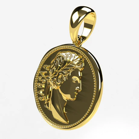 La médaille proposée ici et une représentation fidèle en or massif de cette pièce antique, qui ne vise pas à l’imiter, mais à s’en inspirer suffisamment pour en reproduire les moindres détails, afin de donner à son porteur le sentiment de porter une partie de l’héritage historique de la culture romaine.