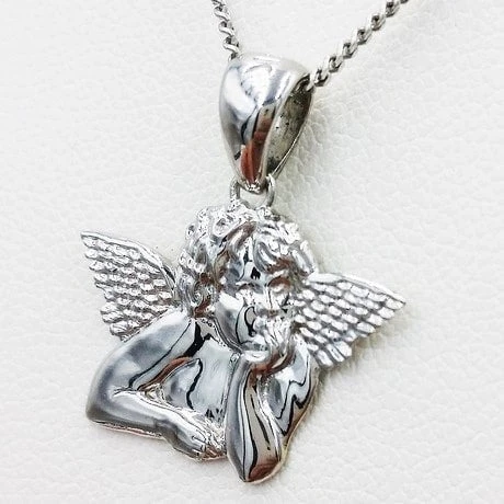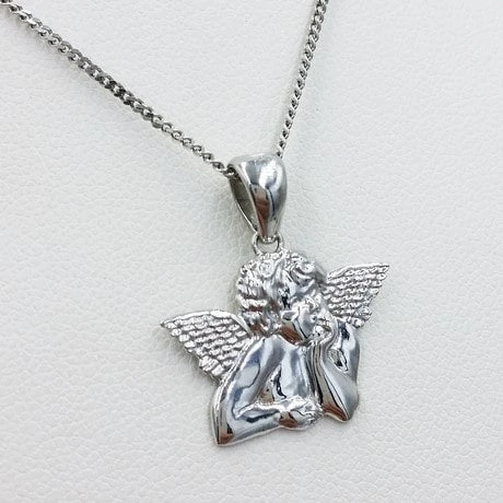 - 20 mm: l’ange fait alors 20 millimètres de large et 14 millimètres de hauteur, le pendenif faisant 21 millimètre de haut avec la bĂ©lière pour un poids de 3 grammes en or 18 carats