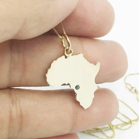 Puisque la plupart des gens qui souhaitent ce pendentif ont des origines africaines bien spécifiques, nous pouvons sertir le diamant à l’emplacement du pays de leur choix, il suffit de nous en faire part dans le cadre des commentaires lors de la phase d’achat du pendentif.