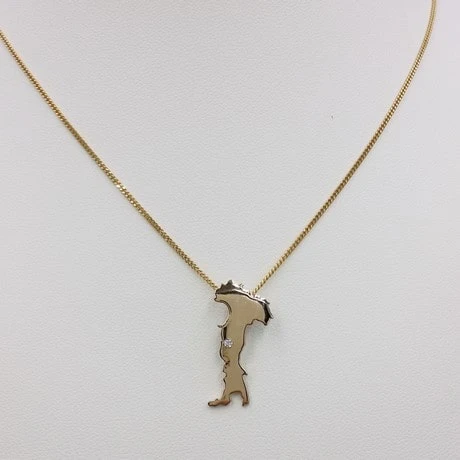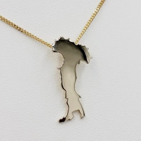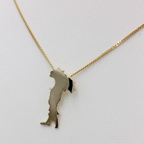 Ce pendentif reprend les contours de la botte italienne découpés manuellement dans une plaque d’or 18 carats laminée. Ce pendentif reprend fidèlement les détails de la côte italienne afin d’en montrer toute la beauté avec les reflets de l’or poli.