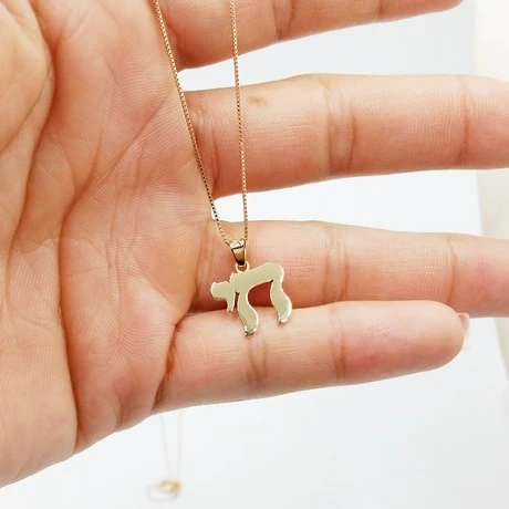 Ce pendentif représente l’écriture du mot Juif Haï qui veut dire « vivant » en hébreu et est très souvent rattaché à Dieu depuis plus de 3000 ans dans l’histoire Juive. Plus qu’un mot il s’agit d’une exclamation, un symbole de ralliement ayant pour signification: « Le peuple d’Israël vit ».