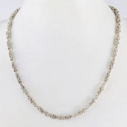 - Une chaîne maille gourmette de 1,2 mm de large et 42 cm de longueur en argent ou en or 18 carats, dans ce dernier cas le poids d’or 18k est de 2,2 grammes