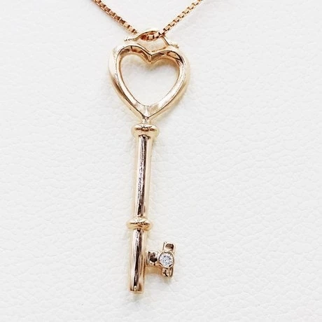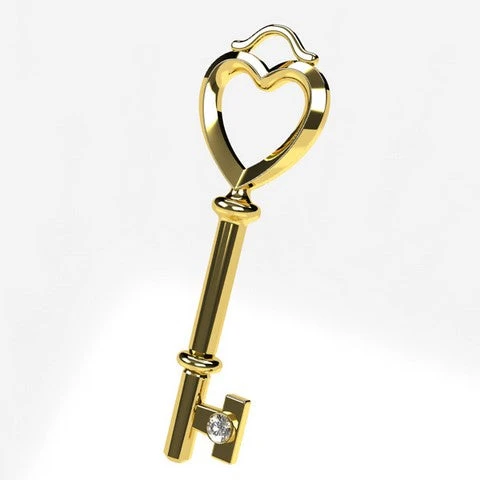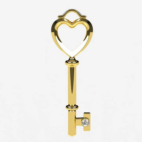 La clef est avec le coeur un symbole d’amour récurrent de la joaillerie. Qu’il symbolise la clef ouvrant le coeur de l’être aimé ou bien celle ouvrant la porte du bonheur, on le retrouve associé avec le cadenas, thèmatique que nous avons déjà traité au travers de cette réalisation de pendentif cadenas et clef en or massif.