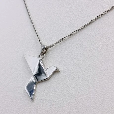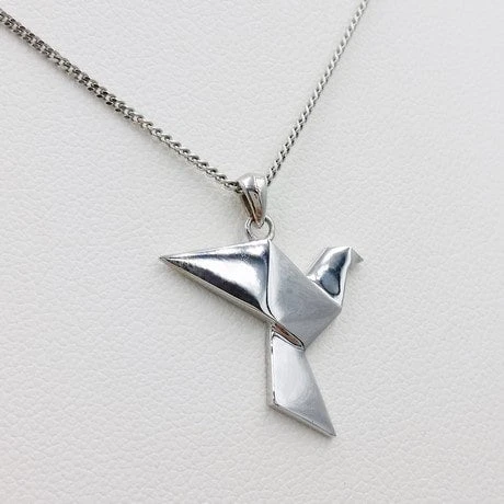 Les forme anguleuses de l’origami donnent un style sobre et moderne à l’image de la colombe qui est un symbole de paix et d’amour. Si ce type de pendentif est plutôt réservé habituellement à la gente féminine, ce design moderne lui donne un style unisexe.