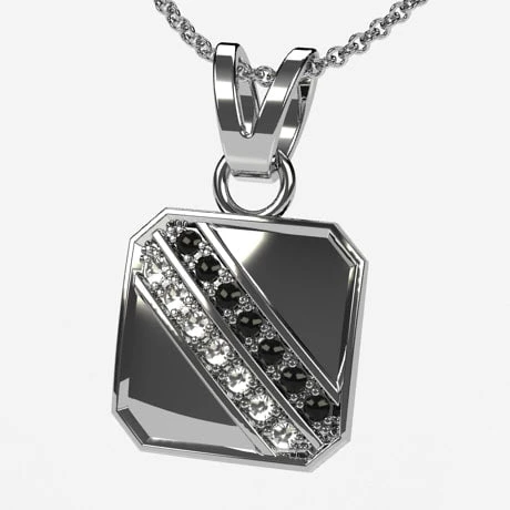 - Diamants Noirs et Blancs: le pendentif est sertis de 7 diamants noirs de 1,5 millimètre de diamètre, de qualité AAA ainsi que de 7 diamants blancs de 1,5 millimètre de diamètre et de qualité HSI