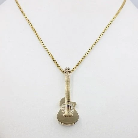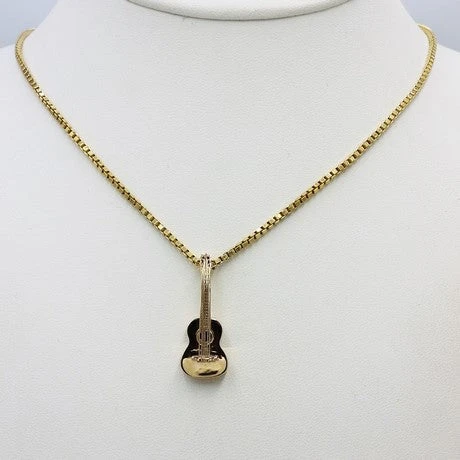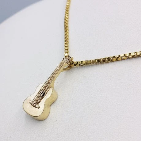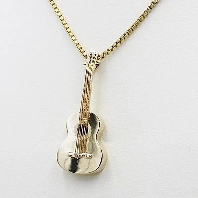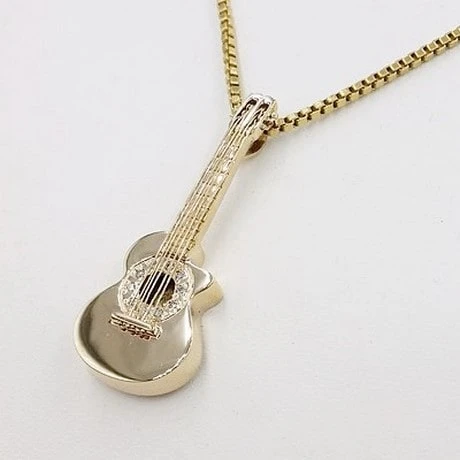 Pendentif guitare sèche en or jaune 18k disponible en plusieurs tailles.