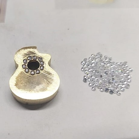 Le passant de chaîne est caché derrière la tête de guitare, ce qui met en valeur de pendentif lorsque celui-ci est vu monté sur une chaine en or.