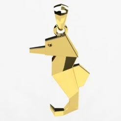 Ce pendentif présente le design d’un hippocampe sous forme d’origami qui reprend la silouhette très reconnaissable du célébre cheval de mer en or massif. Sur les photos du bijou vous reconnaîtrez aisément les détails caractéristiques de l’animal stylisé, à savoir la queue, le museau et la nageoire dorsale.