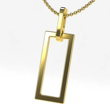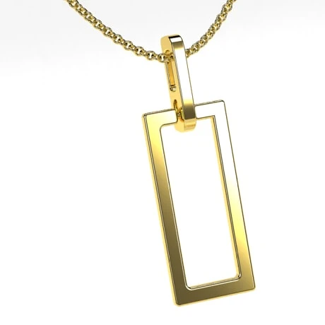 Pendentif rectangle fin au design classique revu avec une touche d’originalité. Ce pendentif est composé d’un simple rectangle en or massif suspendu à un passant de chaîne massif de forme rectangulaire.