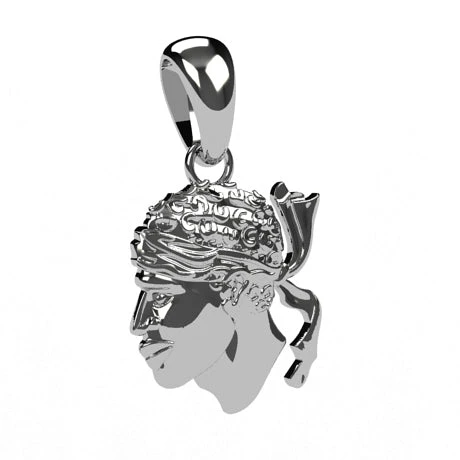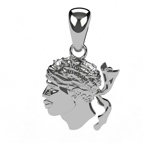 Ce pendentif plaira à toute personne Corse désireuse de porter un symbole identitaire fait en métal précieux et montrant les fins détails du visage, des cheveux et du bandeau.