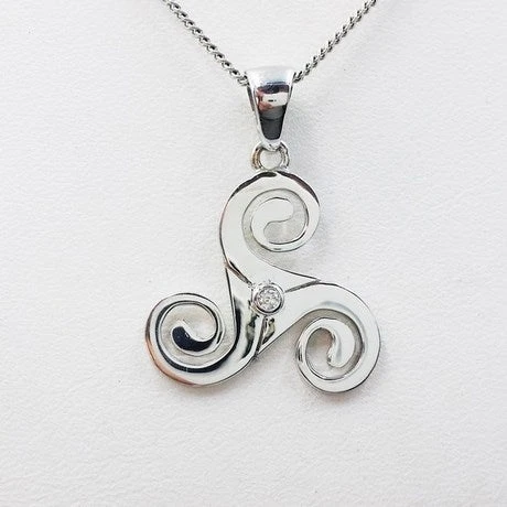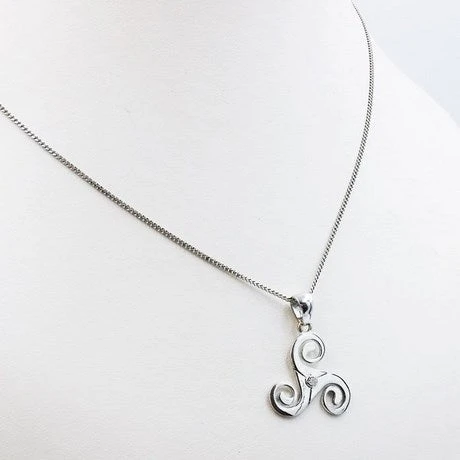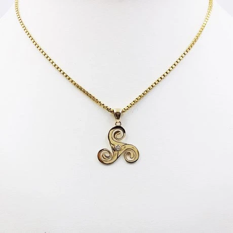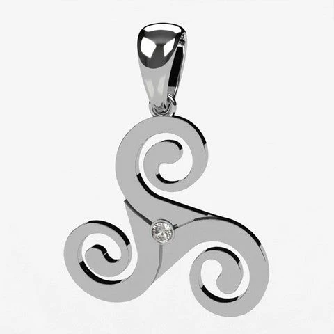 Pendentif triskel en or 18 carats avec diamant ou argent massif avec oxyde de zirconium