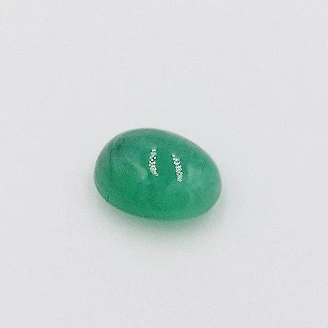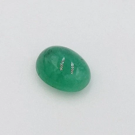 Pierre d’émeraude naturelle taillée en cabochon faisant 8 millimètres de long par 6 millimètres de large et pesant 1,45 carat.