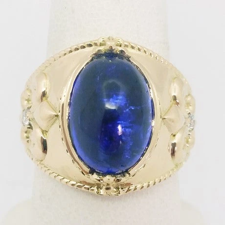 Cette pierre de tanzanite bleue est taillé en cabochon qui 14,1 millimètres de long par 10 millimètres de large pour un poids de 8,6 carats. Il s’agit d’une belle pierre bien visible en taille dont la couleur bleu prononcé ne peut pas être ignorée lorsque le bijou serti de cette pierre est porté.